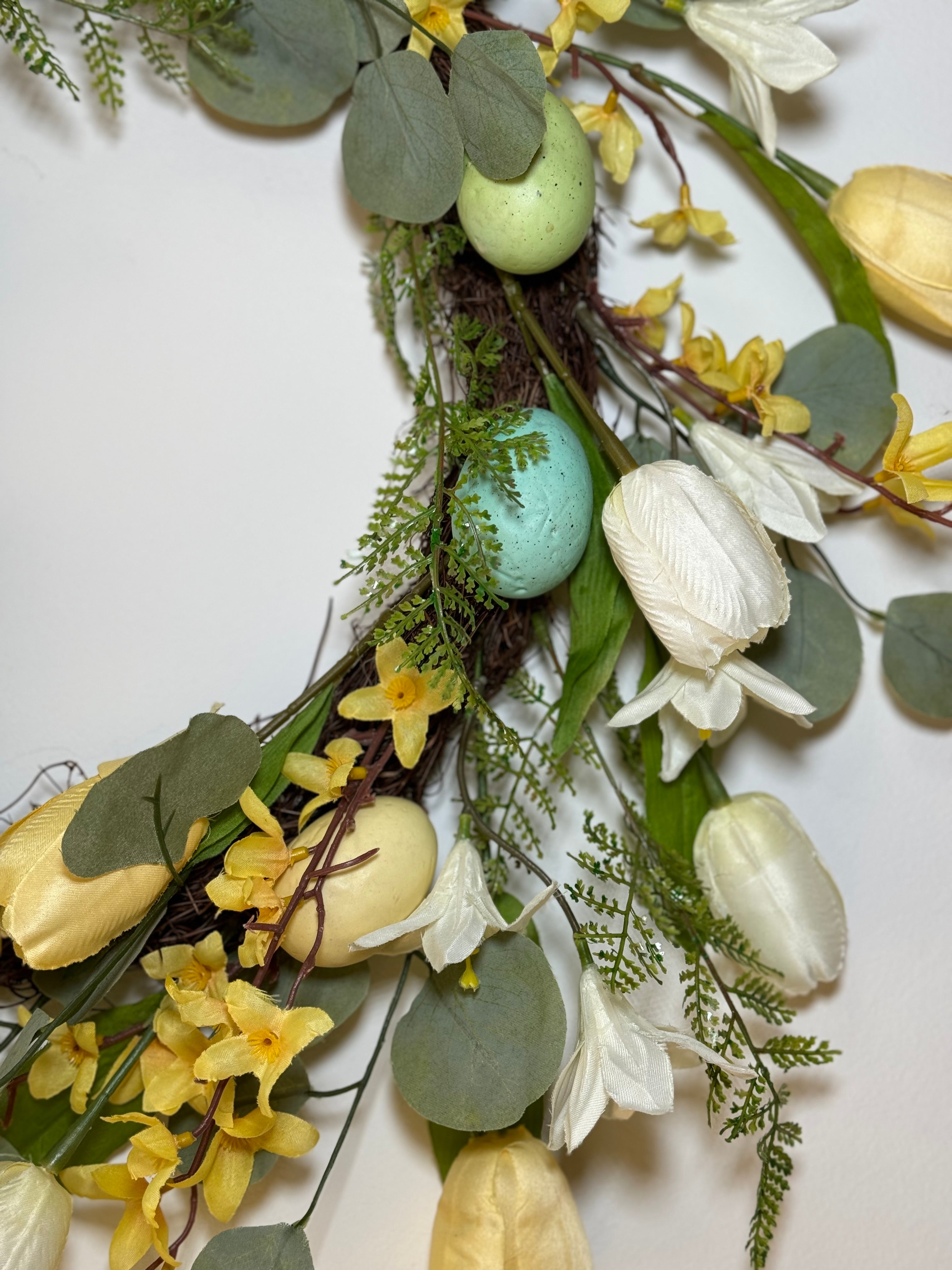 This exquisite Easter wreath is a must-have for your home decor. Made with top-quality materials, its intricate design and vibrant colors will surely impress your guests. Bring the joy of Easter into your home with this stunning wreath.