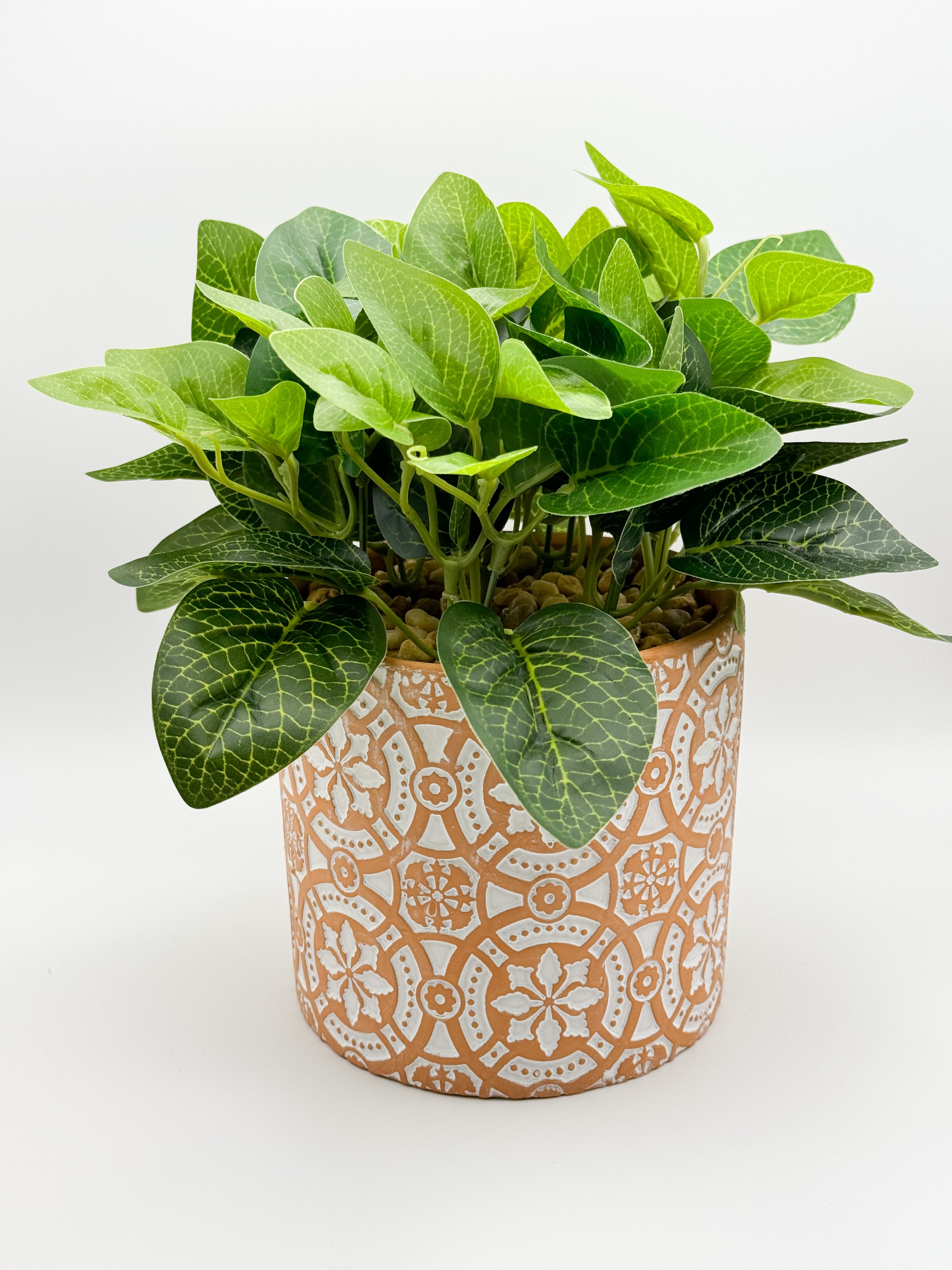 This elegant ceramic pot boasts a realistic faux plant, perfect for adding a touch of nature to any space without the hassle of maintenance. Its lifelike appearance and quality materials make it a durable and versatile addition to any decor.