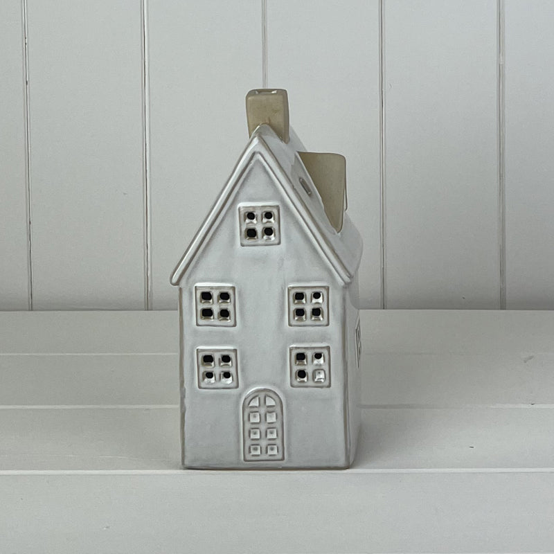 Glazed Ceramic House Ornament with Textured Detail and LED 19.5cm