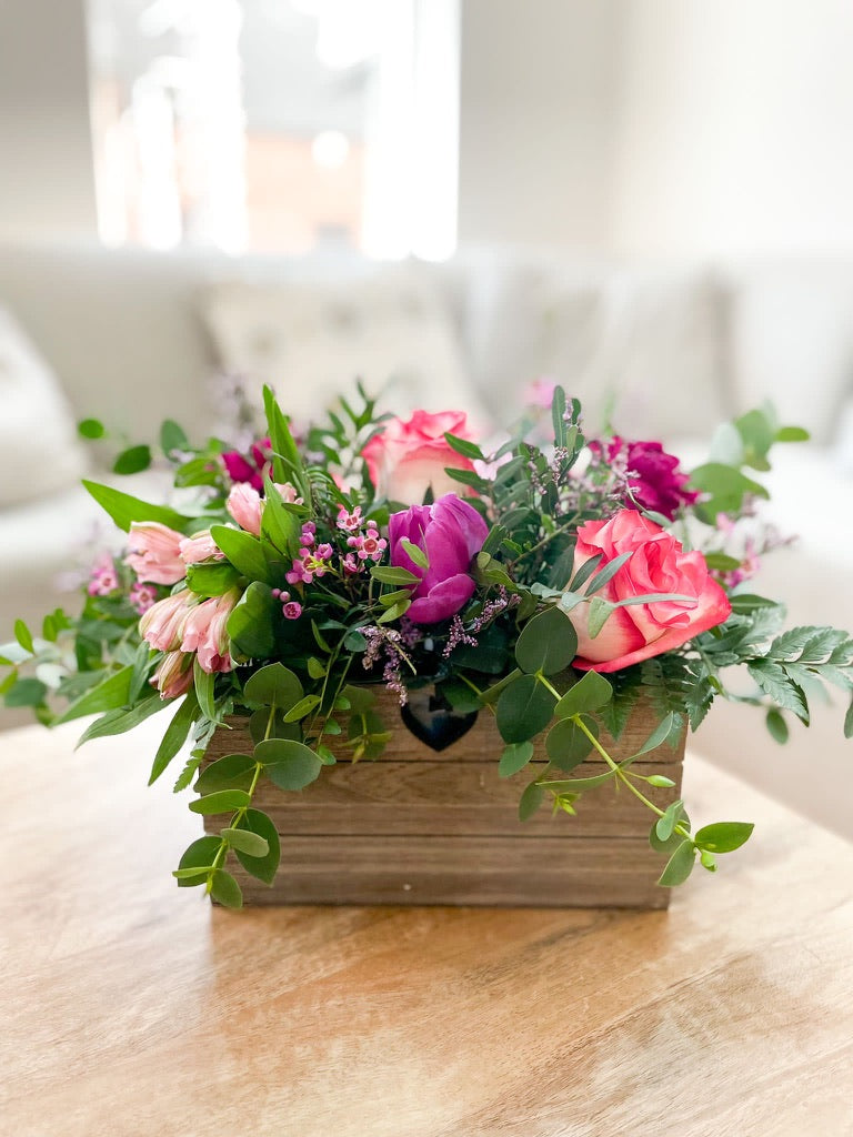This Mother's Day, give the gift of fresh flowers arranged in oasis in a wooden crate. These beautiful flowers are sure to brighten up any space and make a thoughtful and elegant gift for your loved ones. With the added benefit of lasting freshness, this is a gift that will truly show your appreciation and love.