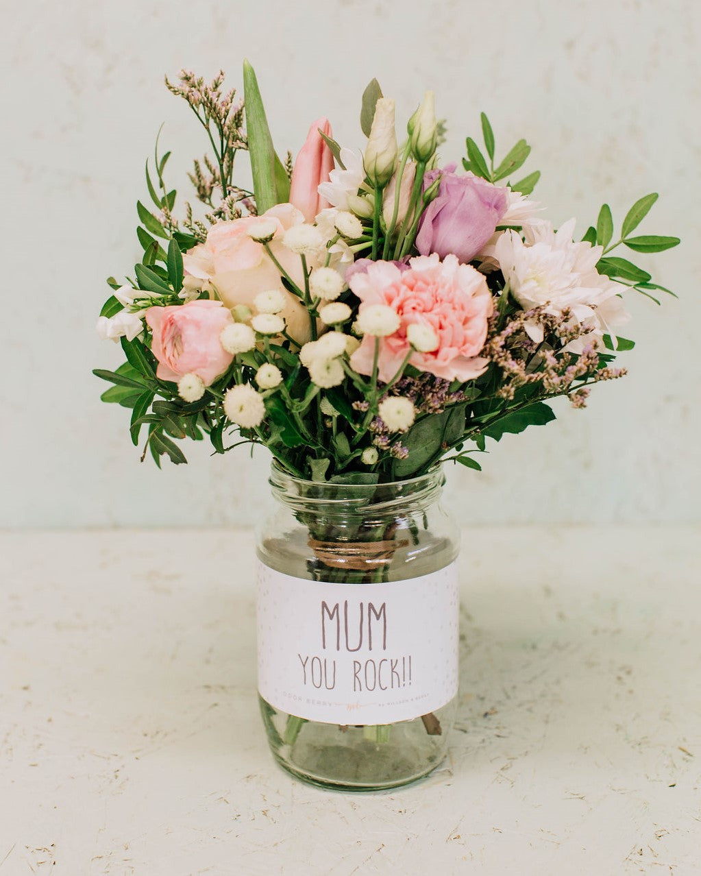 Our Mother's Day Fresh Flower Jars are the perfect gift to show your love and appreciation. Each jar features a special message and is filled with fresh flowers, all delivered in our 'sent to make you smile' box. Make her day with this thoughtful and beautiful gift.