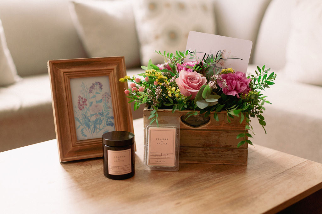 Soy wax melt packs can be added with fresh flowers to make the perfect postal gift.