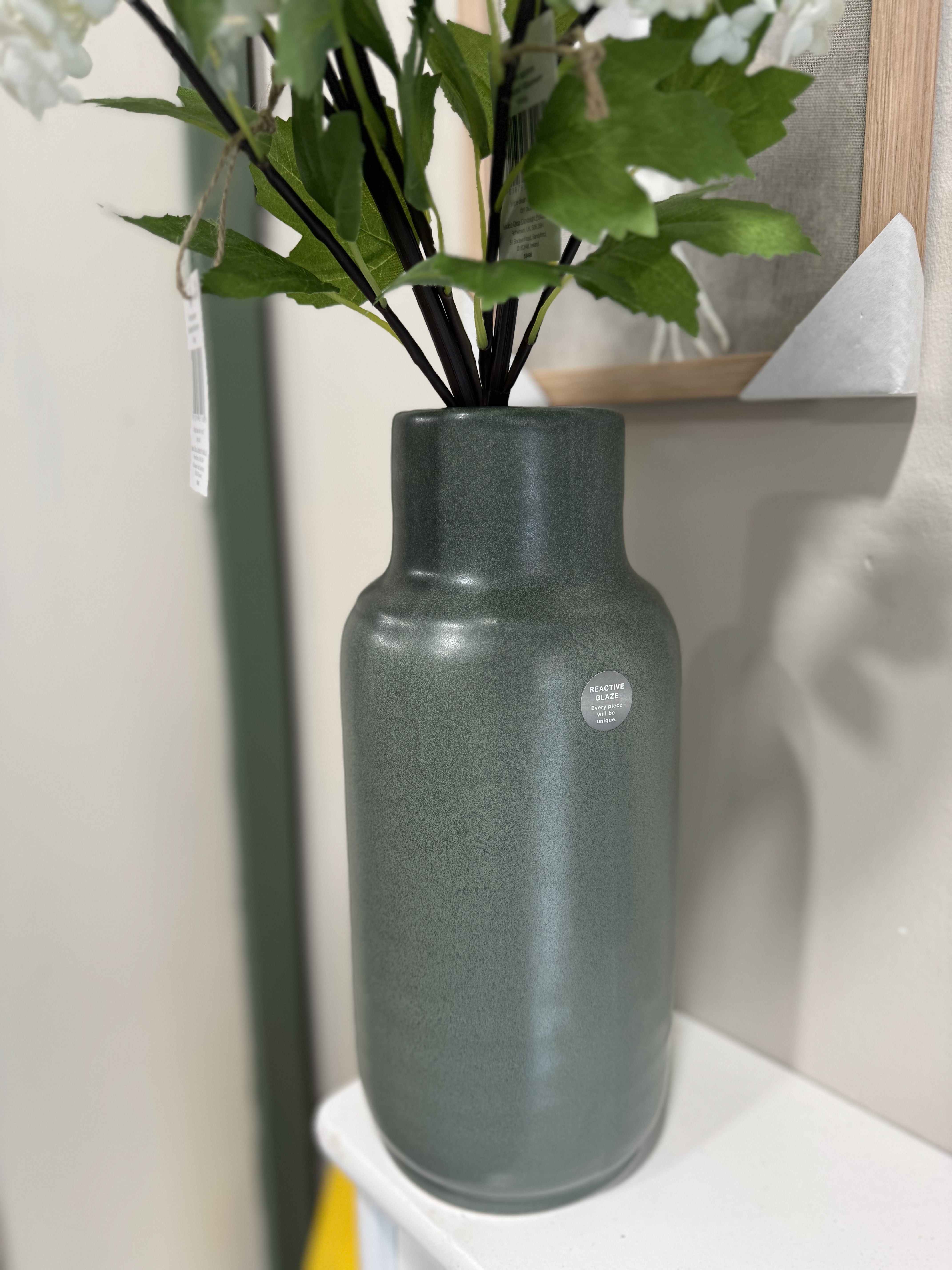 "This stylish sage green vase is the perfect addition to any home. Its elegant design and rich color will enhance any room. Made from high-quality materials, it is durable and long-lasting. Perfect for displaying your favorite flowers or as a standalone decor piece. Elevate your home decor with this beautiful vase."