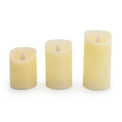 Bring a soft, diffused glow into the home with this set of three Ivory coloured LED pillar candles. The cost effective way to replicate the candle trend.