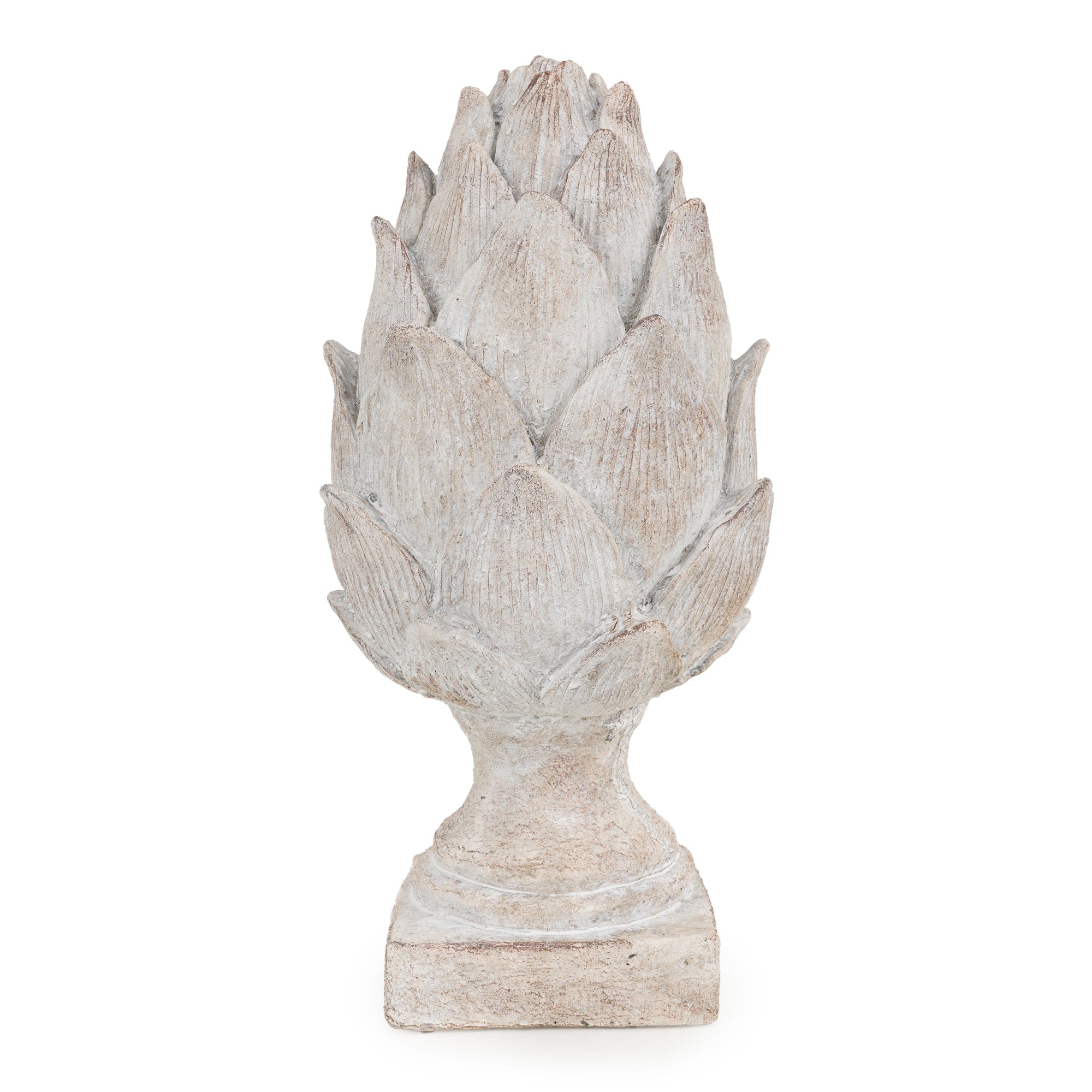 This small resin artichoke ornament is an elegant decorative accent, perfect for adding subtle charm to your interior décor. Expertly crafted with detailed, lifelike petals, it captures the distinctive shape and texture of an artichoke beautifully. The neutral, softly distressed finish lends an understated rustic appeal, making it suitable for both contemporary and traditional settings. Ideal for placing on shelves, tabletops, or mantlepieces, this timeless piece effortlessly enhances the character and warmth of your living space.