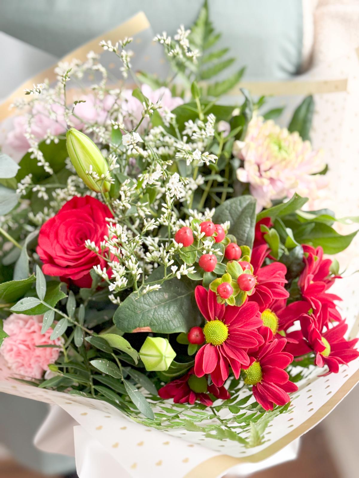 This Valentine's Day, surprise your significant other with our hand-designed bouquet featuring a mix of roses and statement flowers. The perfect way to express your love and make them feel special. Our fresh flowers are expertly selected to convey beauty and sentiment. Perfect for any romantic occasion, leave a lasting impression with our Valentine's Day bouquet.