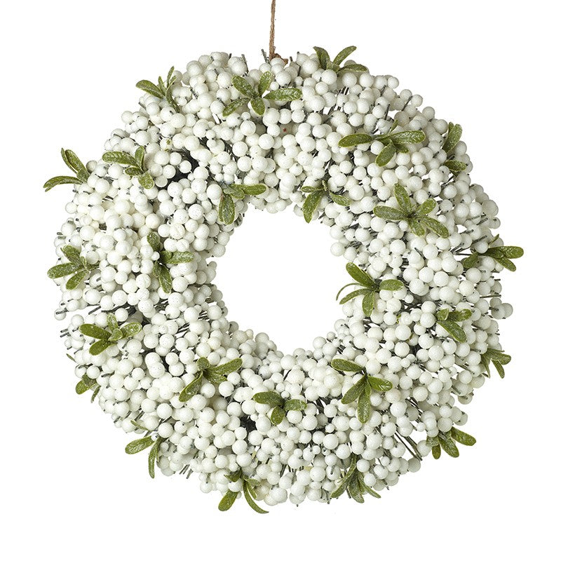 This stunning wreath features a statement design of white berries and mistletoe. Its elegant colors and natural materials make it a beautiful addition to any home during the holiday season. The perfect way to add a touch of sophistication and festive spirit to your decor.